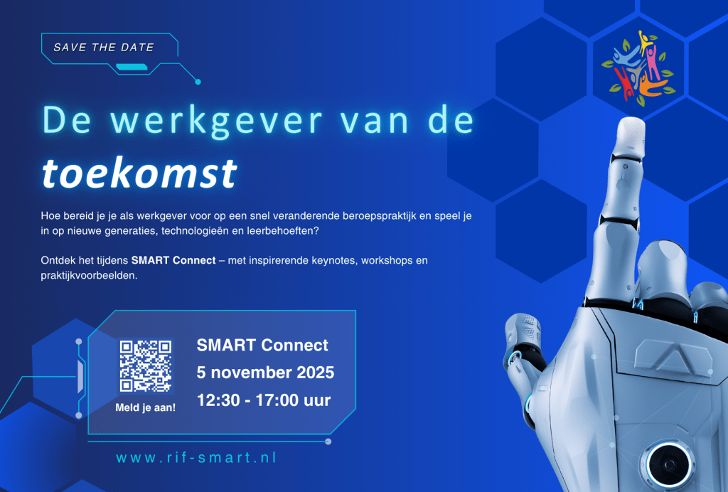 Op woensdag 5 november 2025 organiseren we SMART Connect XL, een landelijke community of practice dag voor alle partners, onderwijsprofessionals en relaties van het RIF-project SMART. Het thema van deze editie: Werkgever van de toekomst.